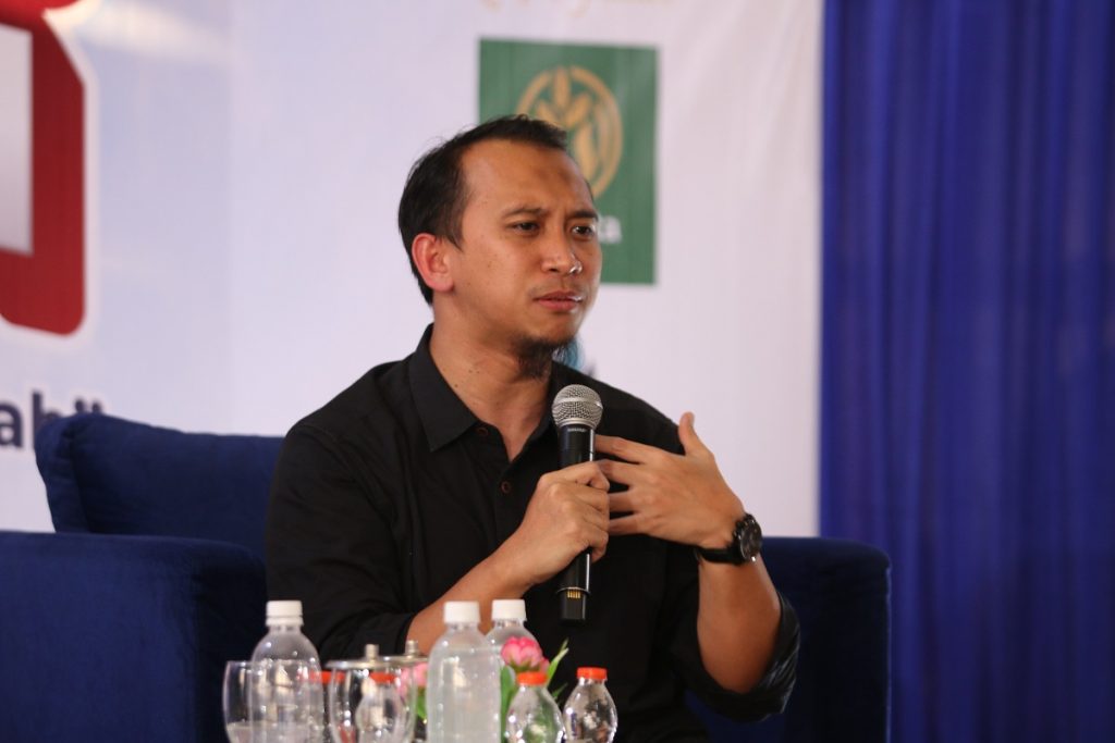 Pembicara pertama adalah Mas Arie Untung. Beliau berbagi cerita mengenai perjalanan hijrahnya. Di antara pelajaran yang dapat diambil, keinginan beliau mengenal ajaran Islam, keteguhannya, rasa sayangnya kepada istri, berserah dan memohon pertolongan kepada Allah, serta berbenah untuk menjadi semakin baik.