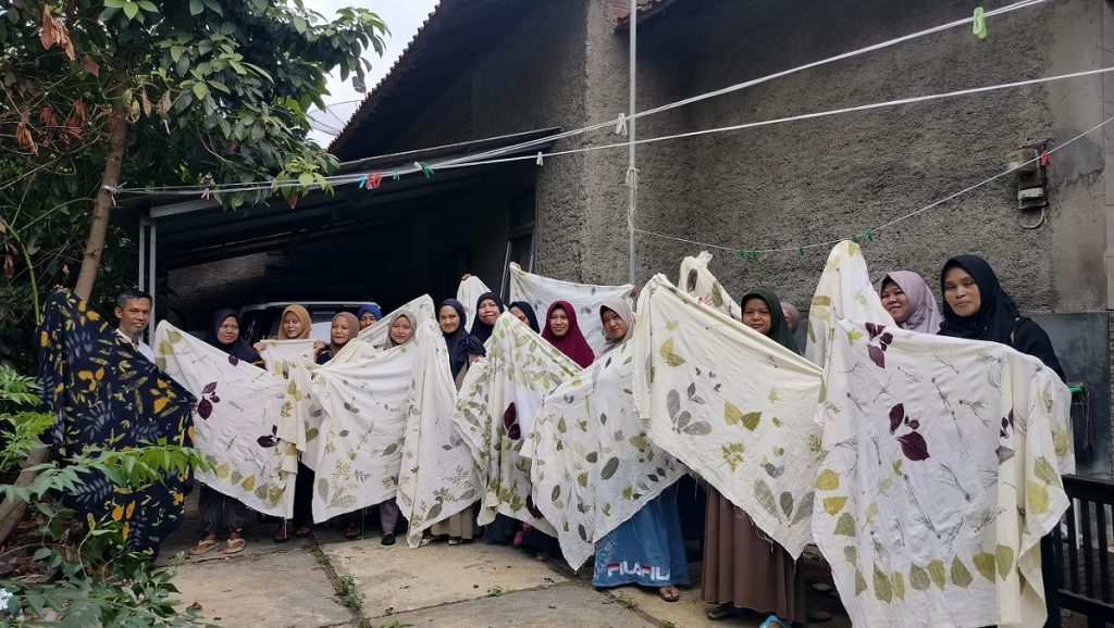 Dalam kegiatan tersebut, para ibu rumah tangga yang berjumlah 24 orang mengikuti pelatihan dasar dan praktek ecoprint. Sebuah tehnik mencetak daun /ranting/bunga ke dalam media kain.